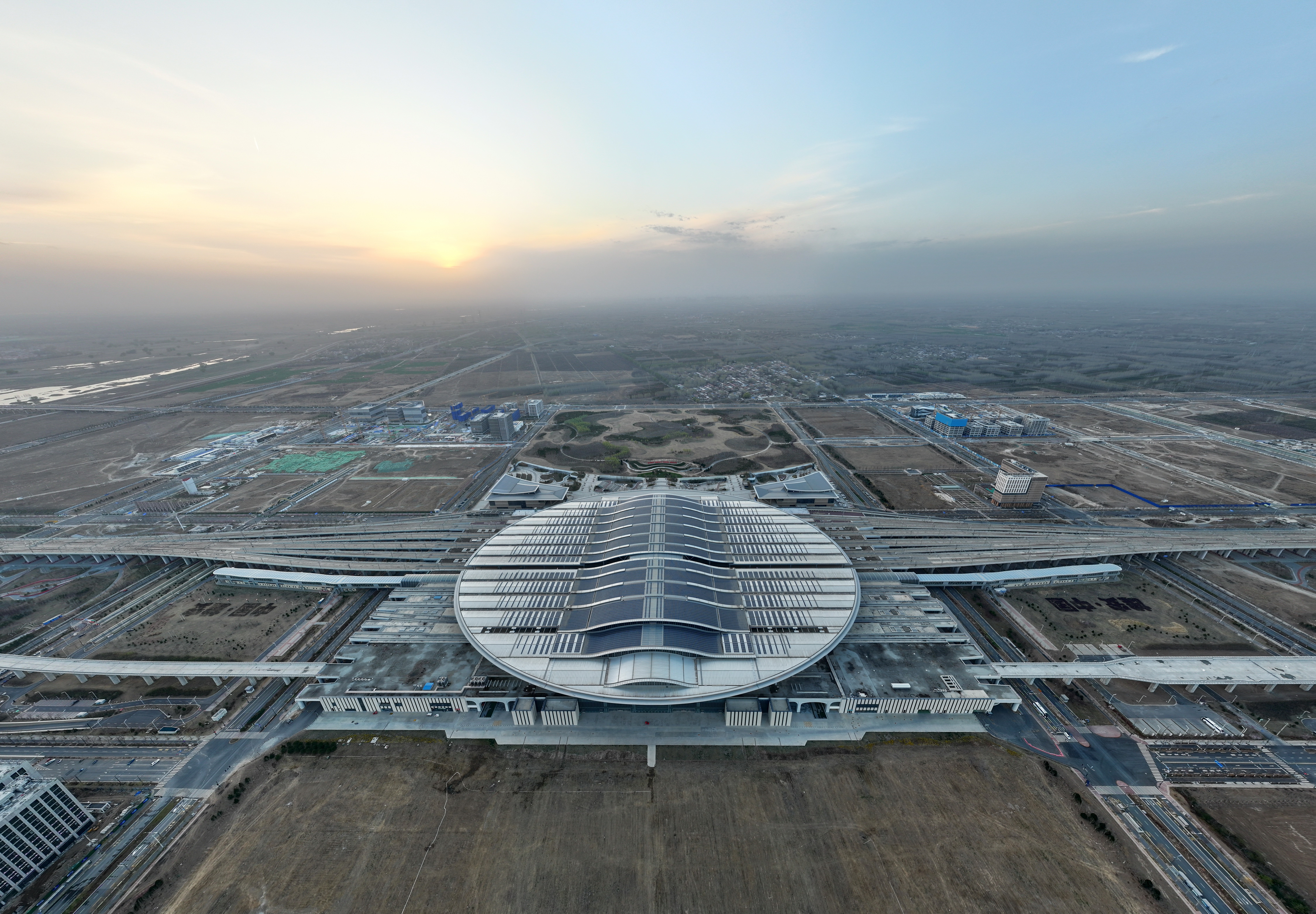 ↑这是京雄城际铁路雄安站(3月29日摄,无人机照片)。