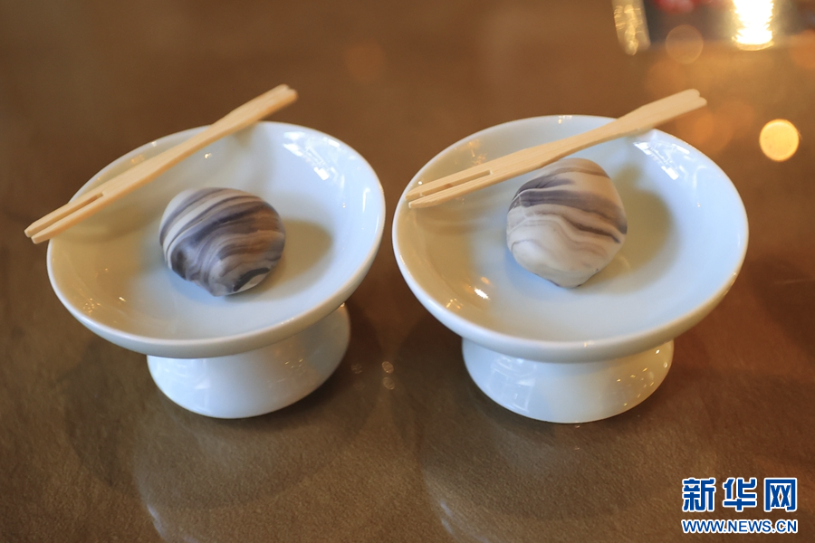 大理石方志馆文创区,制作成大理石形状的巧克力(摄于4月3日)。(新华网 赵普凡 摄)