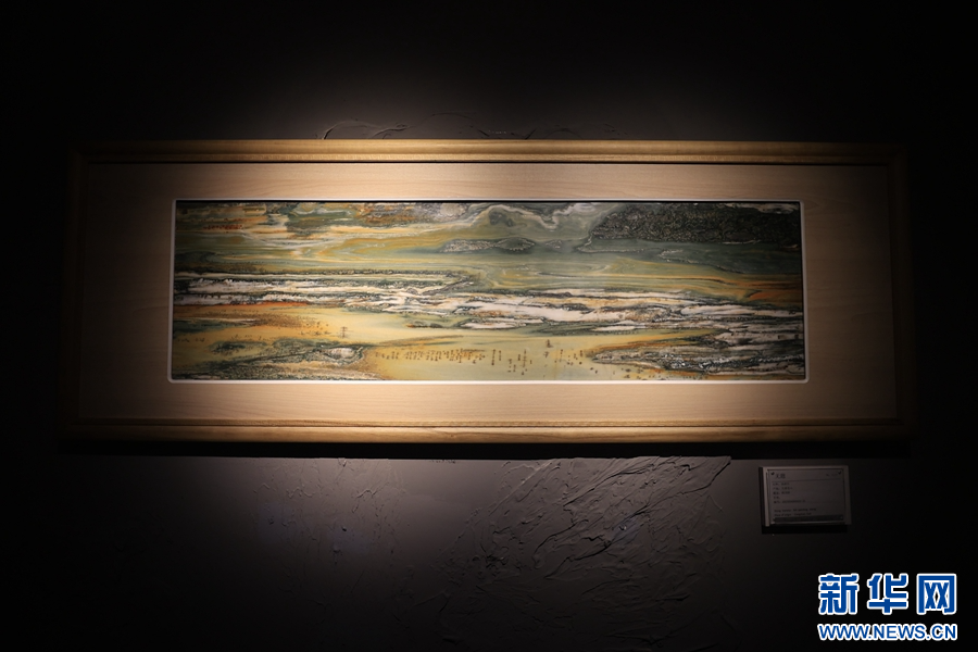 大理石方志馆展出的大理石画(摄于4月3日)。(新华网 赵普凡 摄)