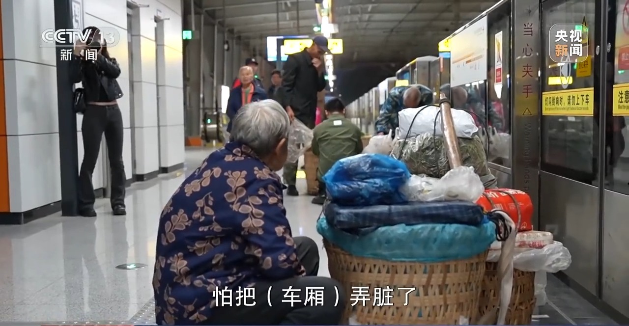 在坐了23站地铁后,冯忠福老两口还需要再转1站公交车,最后到达目的地人和站附近的菜市场。