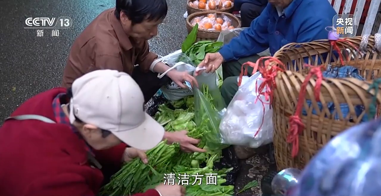 重庆人和加新农贸市场经理 张红:背篓菜农每天最起码有500人以上。他们在专门的地区摆摊,我们不会收他们的费。清洁方面,他们走了之后,我们公司有清洁团队来做卫生,对他们都是免费的,给背篓菜农留点空间,毕竟他们也很辛苦的。