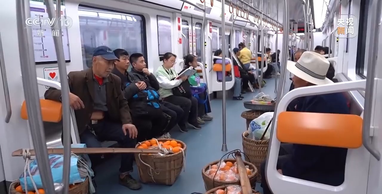 石船镇位于重庆市渝北区东部,离市区路程有40多公里。2022年6月,重庆轨道交通4号线石船站开通运营后,石船站就设在不到两公里外的村口。现在两位老人步行最多半小时,就可以到达地铁站。同时,按照当地的政策,重庆市行政区域内,年满65周岁的老人,可以免费乘坐地铁。像冯忠福夫妻一样,搭乘地铁去市区卖菜卖水果的村民开始多了起来,慢慢地,4号线被大家亲切称为“背篓专线”。