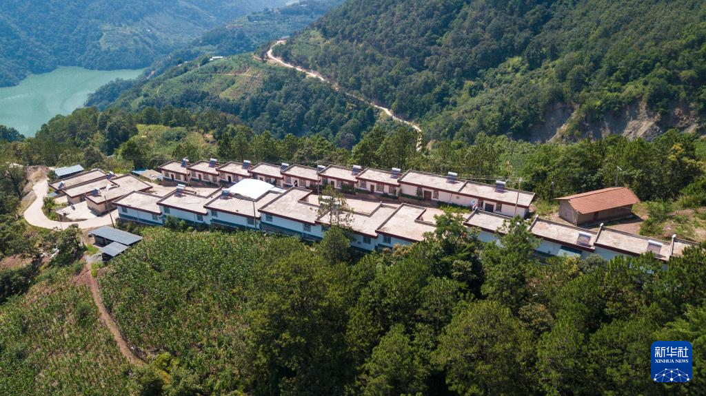 四川凉山州盐源县藤桥乡麻柳村的通村硬化路和路旁的新居(2019年8月13日摄,无人机照片)。新华社发