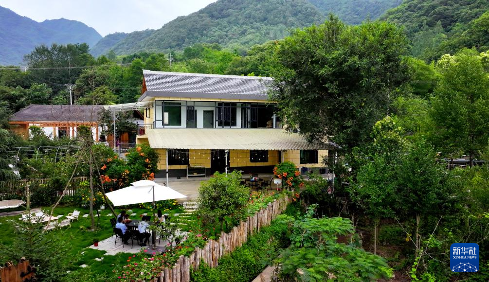 陕西省汉中市留坝县紫柏街道小留坝村的民宿(2023年7月24日摄,无人机照片)。新华社记者 刘潇 摄