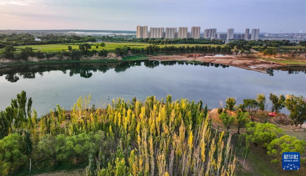 陕西省榆林市靖边县城内芦河一角(2023年8月20日摄,无人机照片)。新华社发(张岚 摄)