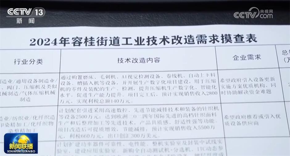 设备更新需求高涨,当地主管部门也在加快企业摸底。在容桂街道办公室,记者看到了一张工业技术改造需求摸查表。在已经走访的67家企业里,有29家企业进行了500万元以上的技术改造项目备案,总投资额超过4.5亿元。