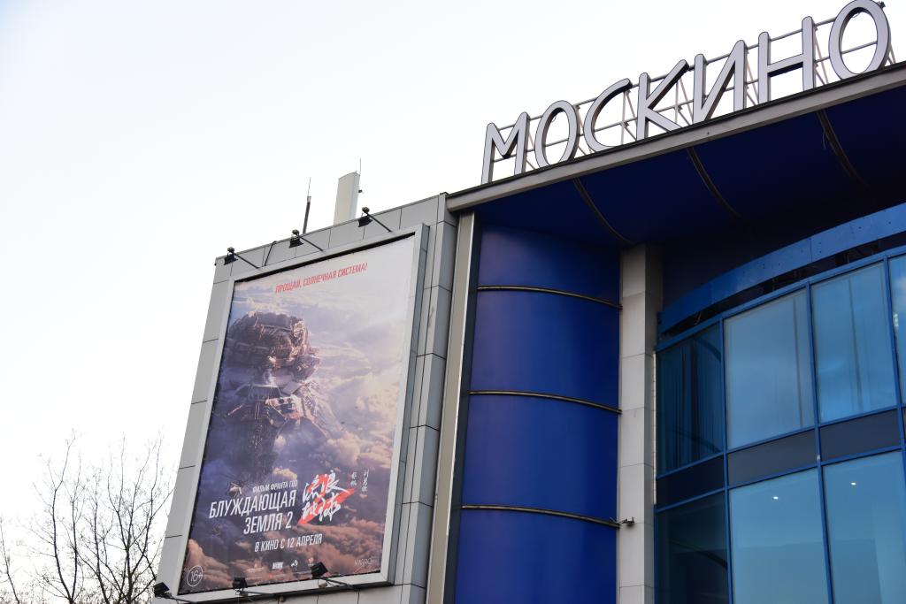 这是在俄罗斯首都莫斯科“莫斯科电影”旗下的宇宙电影院外拍摄的《流浪地球2》电影宣传海报。新华社记者 华迪 摄