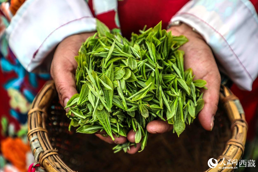 采摘的茶青。人民网记者 次仁罗布摄