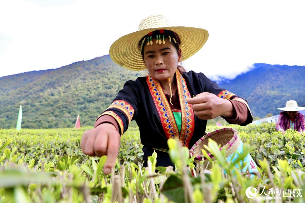 墨脱县门巴族茶农采摘茶叶。人民网记者 次仁罗布摄