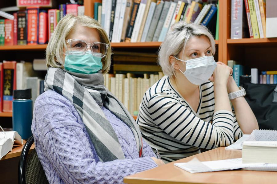 2021年3月4日,学生在位于莫斯科的俄罗斯国立人文大学孔子学院课堂上学习汉语。新华社发(叶甫盖尼·西尼岑摄)
