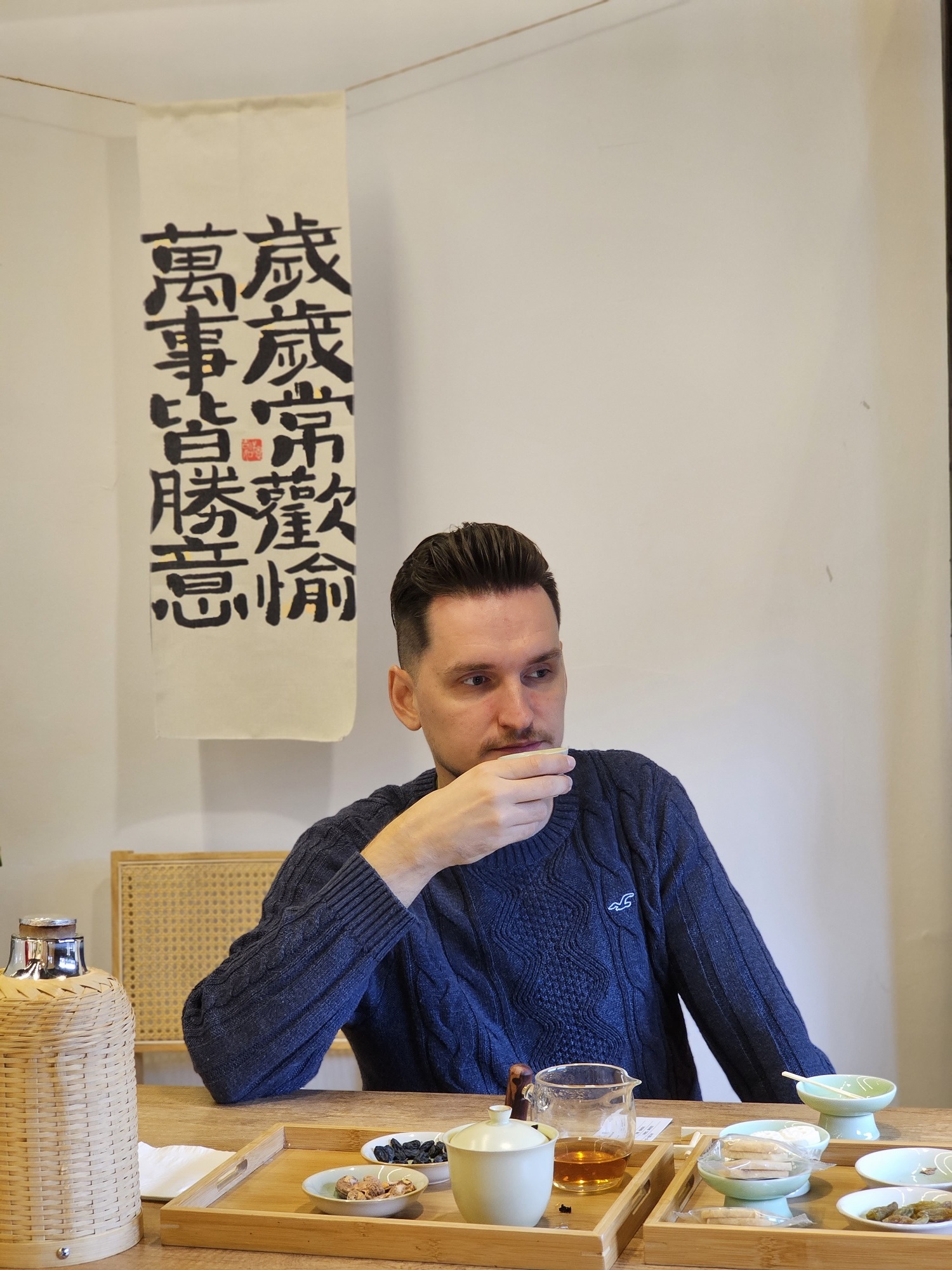 梁允迪:我大概从(20)15年开始品尝不同的中国茶,觉得都非常好喝。比如说,我几乎每天喝的是云南的普洱茶,还有我最喜欢的一种是大红袍,那是福建的一种茶。我个人对茶文化非常有兴趣,不管去什么地方都可以喝到当地的一种茶。在俄罗斯,现在也有不少这样的茶店,可以买到正宗的中国茶,都是从中国出口到俄罗斯的,对茶有兴趣或者喝茶的人也越来越多。