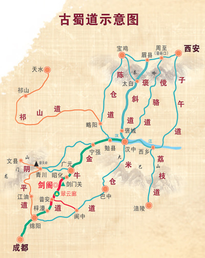 古蜀道示意图。