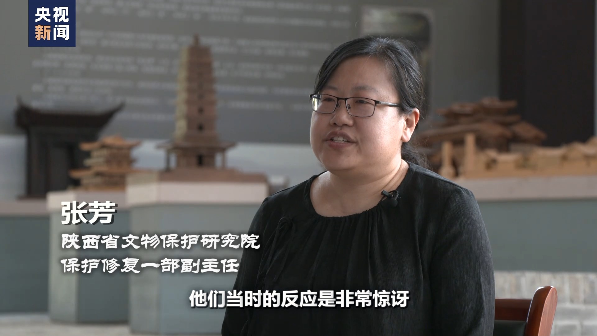 陕西省文物保护研究院保护修复一部副主任 张芳:他们当时的反应是非常惊讶,因为这种纯粹的,没有用一根钉子的榫卯结构层层叠叠,在上面天宫楼阁的一个呈现。他们在法国是完全见不到,他们也想象不到。