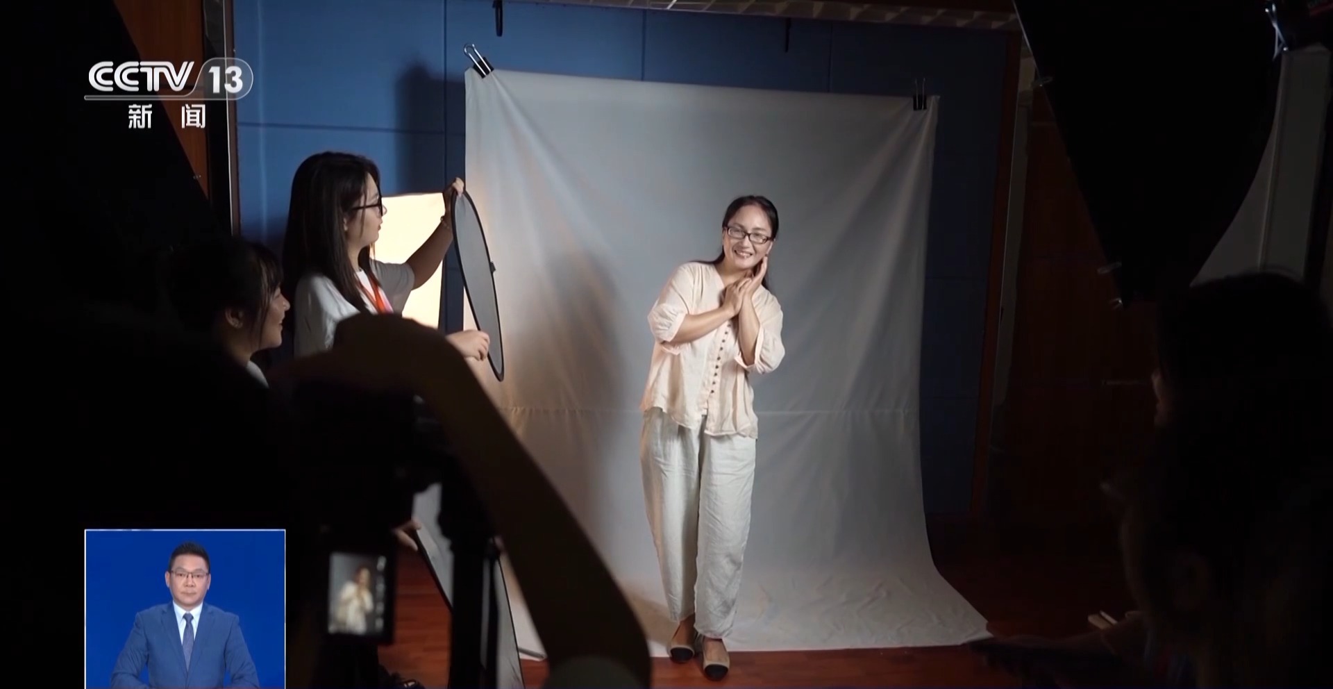 搭好影棚,测试完灯光和相机参数,第一位宿管阿姨被邀请到化妆区。平时很少打扮自己的宿管阿姨,被一群学生围着,多少有点害羞。