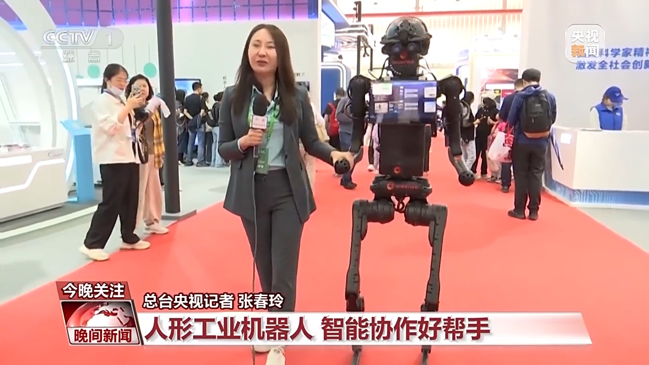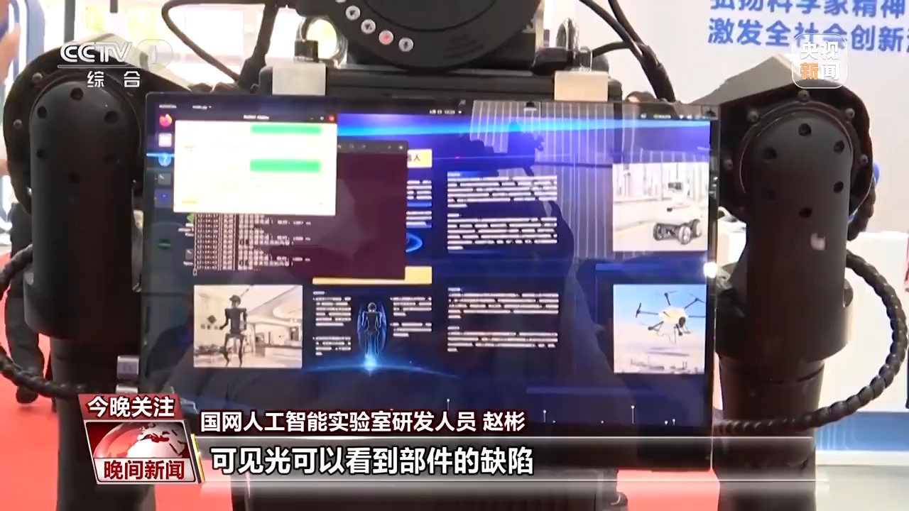 总台央视记者 张春玲:我身旁的这个机器人它叫钢宝,现在已经用在了我们的电力巡检当中,而且它可以和我们的人工进行非常紧密的协作和配合。