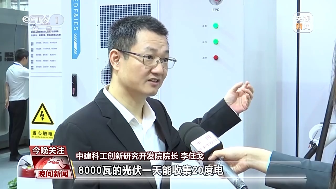 中建科工创新研究开发院院长李任戈:我们屋顶装了8000瓦的光伏,一天能收集20度的电,我们这辆汽车充满是100度电,我们反过来放电的时候,我们这辆汽车能够供这个房子一个星期使用的电量。