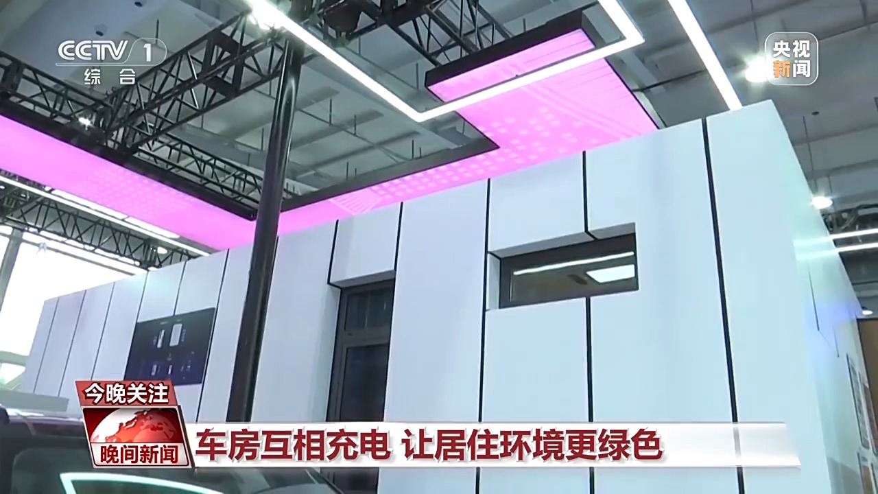总台央视记者 张春玲:在我们房子的顶部还有一个神秘的装备就是新能源电池板,通过新能源电池板对太阳能的收集之后,它可以放在房屋这一侧的储能箱里,同时,它旁边还有一个双向的充电桩,这个充电桩可以给我们的新能源电池汽车进行充电,同时房子的能源匮乏的时候,我们的新能源汽车还可以反向的给这个房子放电,实现了能源循环利用。