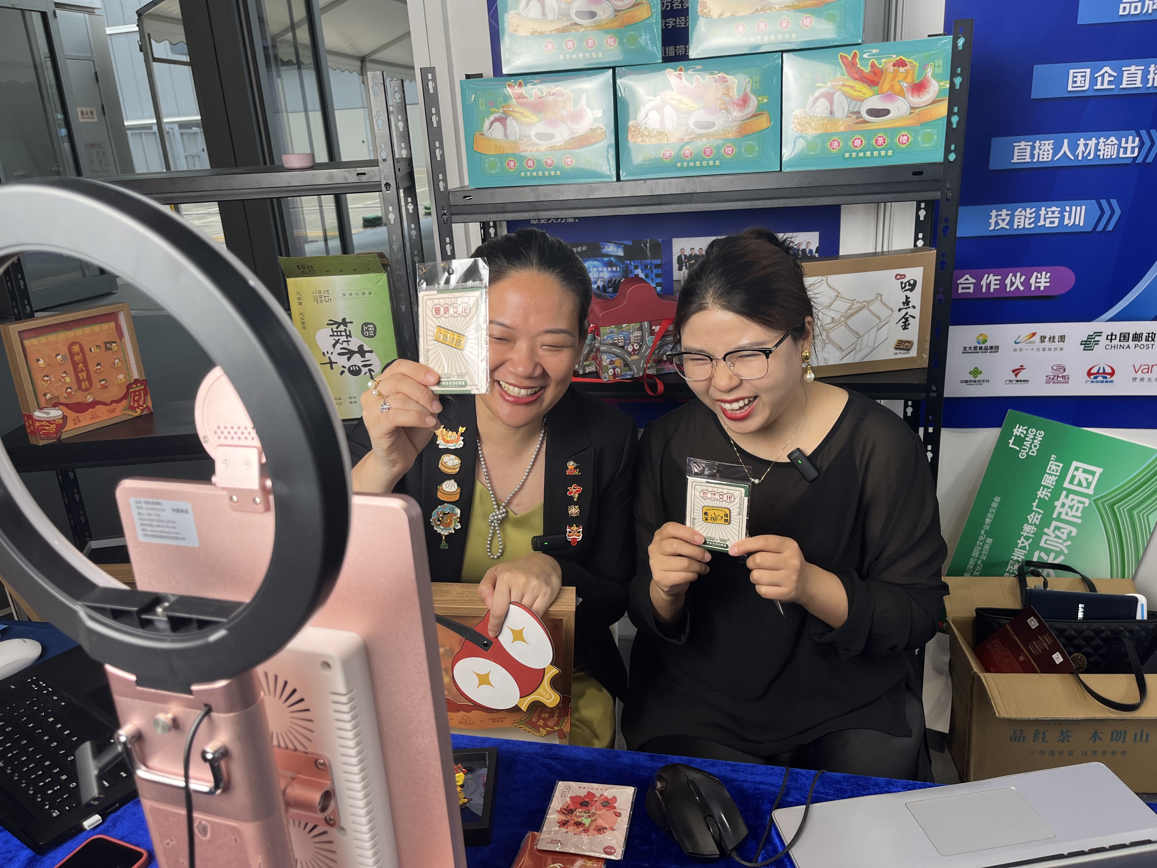新华社深圳5月25日电(记者赵瑞希)“3、2、1,上链接!”伴随着主播喊出的这一声,潮州大锣鼓文创徽章、潮汕传统建筑“四点金”拼装模型、端午仲夏结愿创意挂饰、蹙金妃子绣花嚢DIY手工体验套装……一个个文创产品走进直播间。