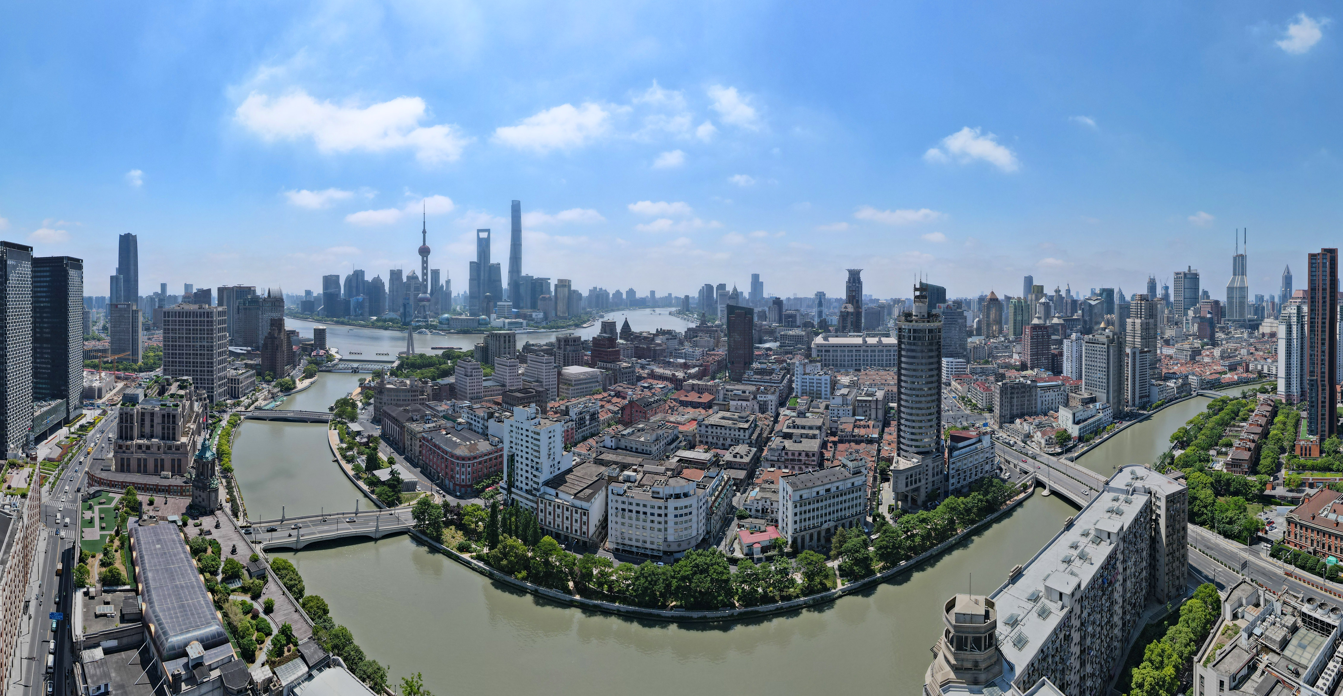 空中俯瞰上海城市风光(无人机照片,2024年5月24日摄)。新华社记者 方喆 摄