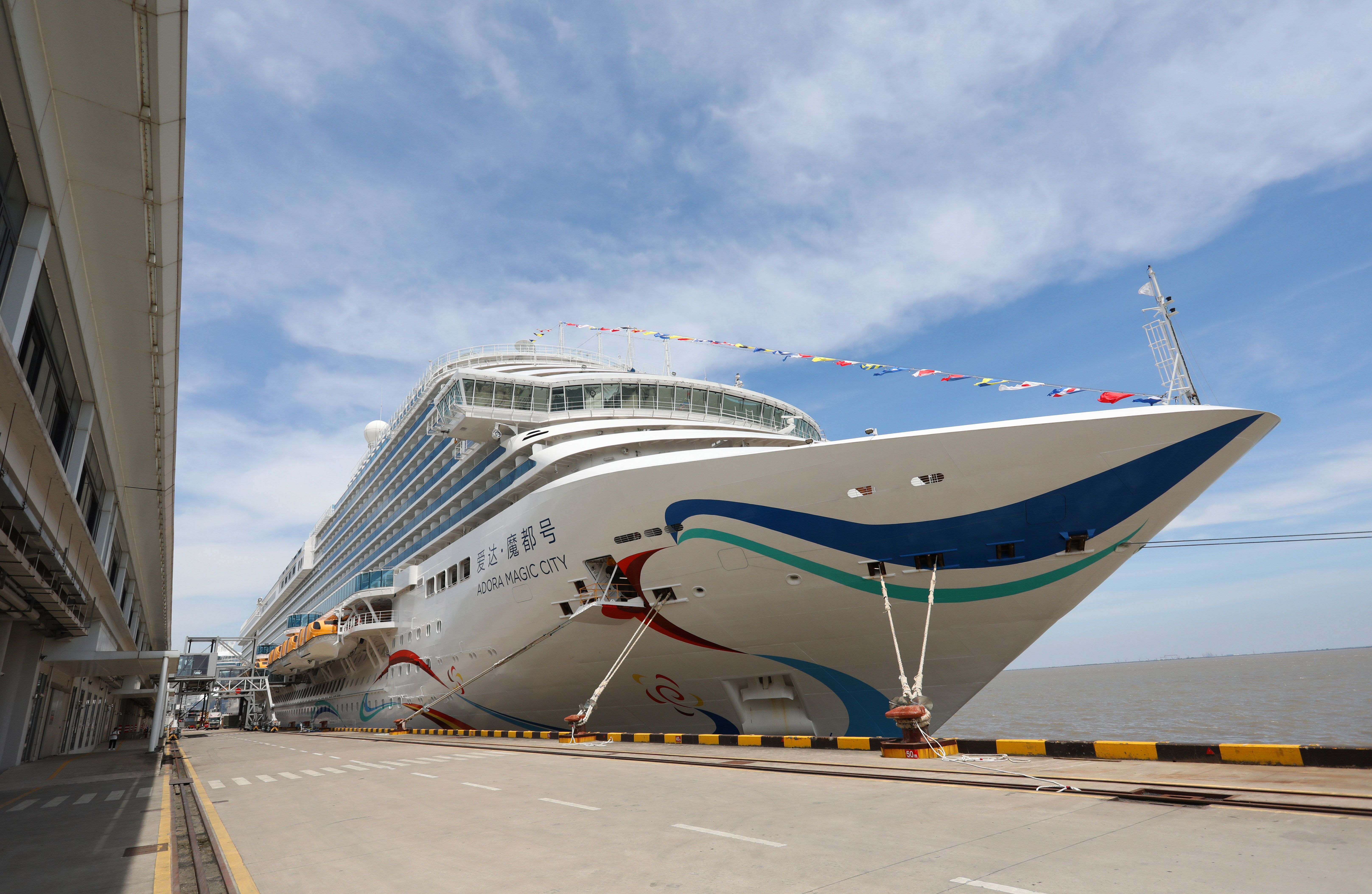 这是停泊在上海吴淞国际客运码头的国产首艘大型邮轮“爱达·魔都号”(2024年5月9日摄)。新华社记者 方喆 摄