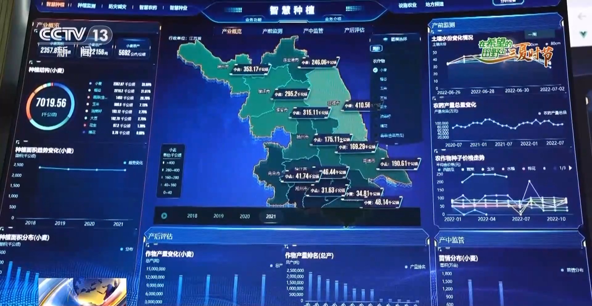 三夏大忙时节,记者来到了江苏省农业农村大数据指挥中心,这里相当于江苏全省“三农”工作的智慧大脑。眼下全省的3600万亩小麦正在抓紧收获,麦田之上,有十朵“数字云”正在为全省的农民,提供精准的科技服务。