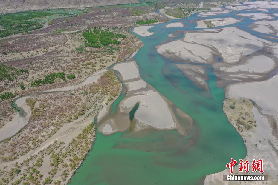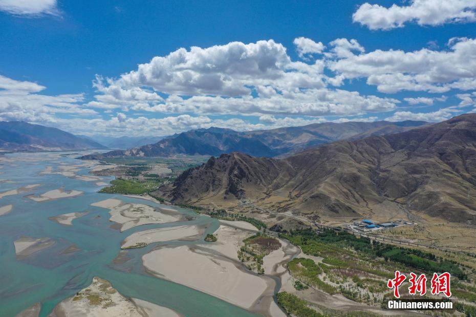 时刻新闻 —分享— 5月23日,西藏山南市扎囊县境内的雅鲁藏布江沿岸绿树成荫。在雅鲁藏布江中游沿岸,顽强生长着柳树、北京杨、银白杨、刺槐、油松、樟子松等植物。图为西藏山南市境内的雅鲁藏布江沿岸一角。(无人机照片) 来源:中国新闻网 编辑:文婷婷
