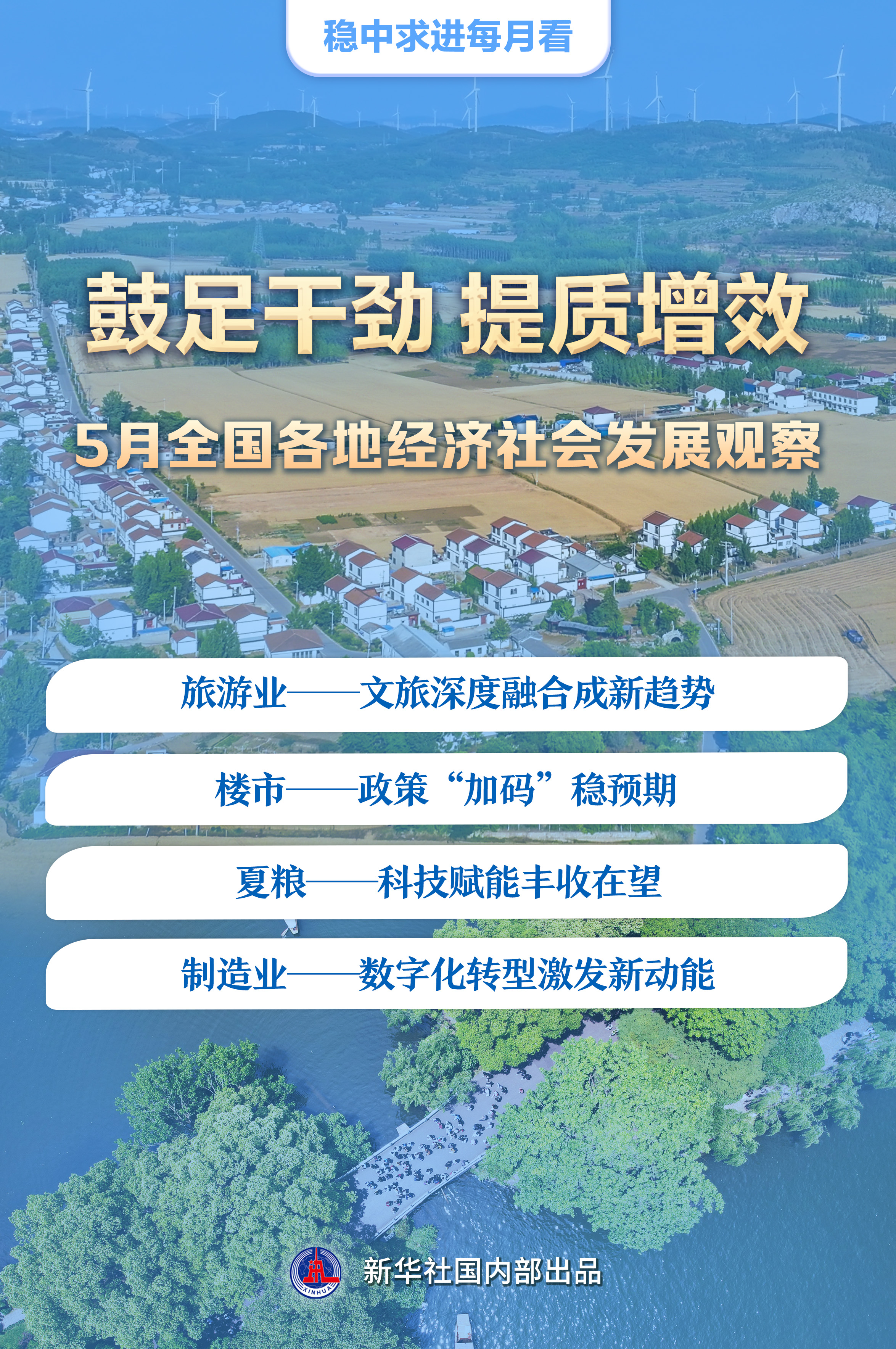 春归夏至,万物生长。文旅融合向“深”挺进,楼市政策优化调整,夏收以科技赋能,制造业数字化转型提速……提质增效成为5月全国各地经济社会发展的突出特点。