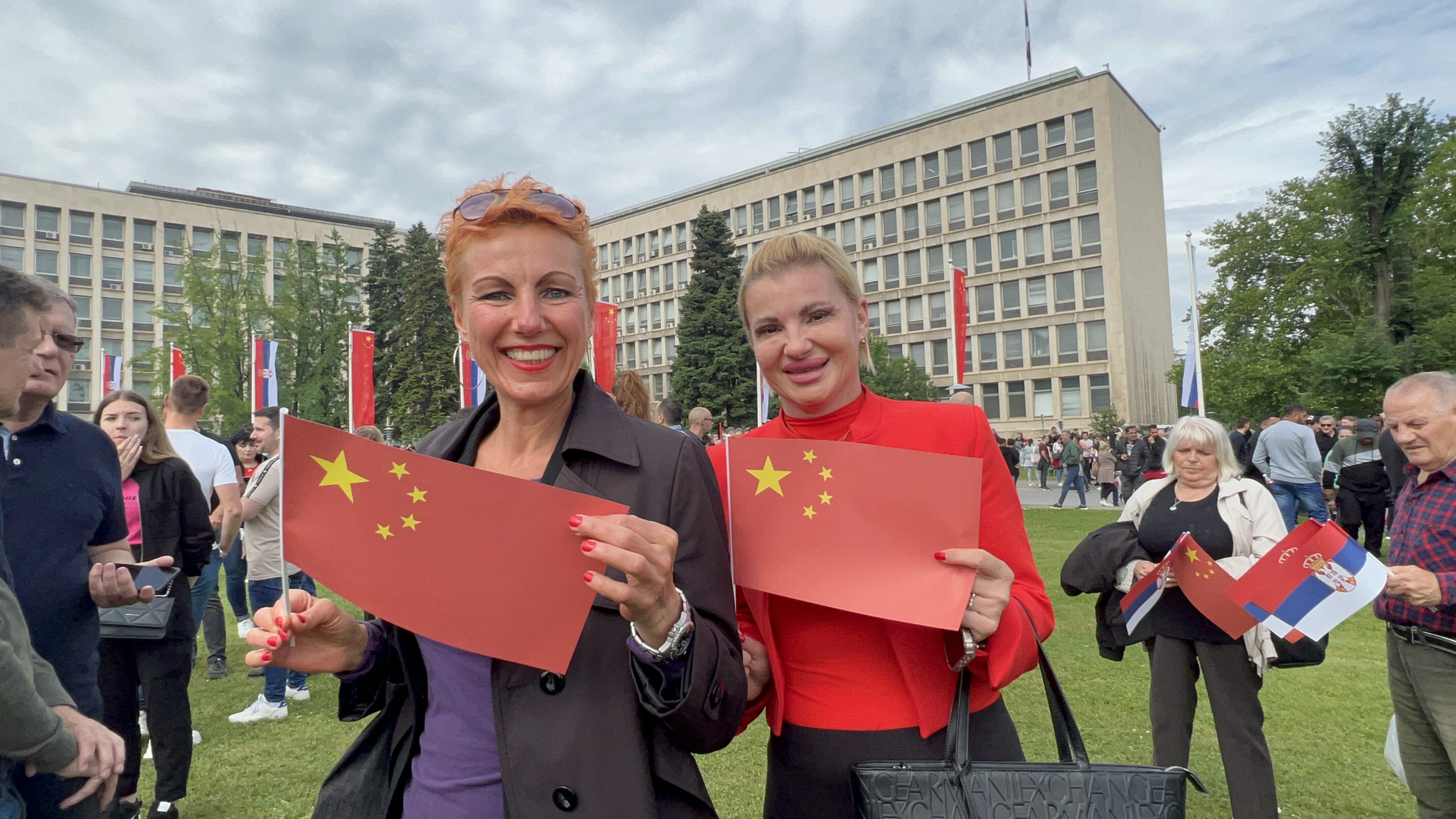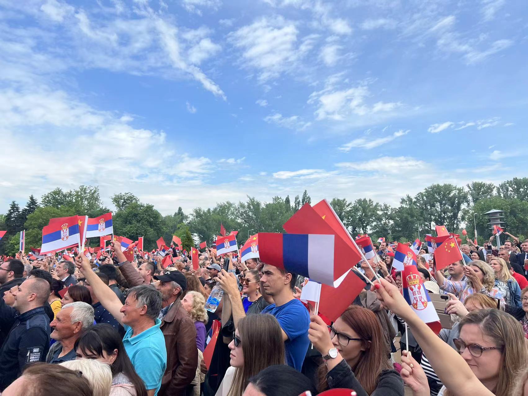 大厦广场上,一万五千名塞尔维亚民众挥舞中塞两国国旗,对习近平表示最热烈的欢迎。