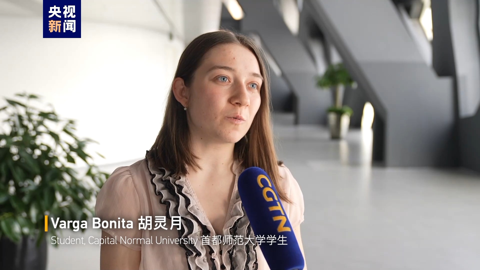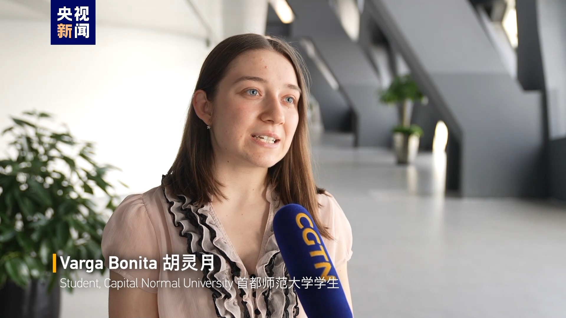 首都师范大学学生 瓦尔加·博尼塔 (又名胡灵月):我从一年级就开始学习汉语。 我想亲自来到中国,与这里的人民交朋友。 我也想体验它的文化和历史。
