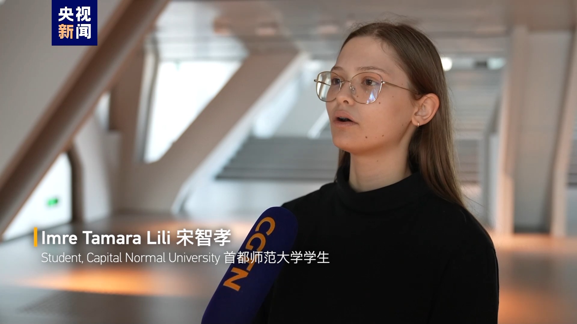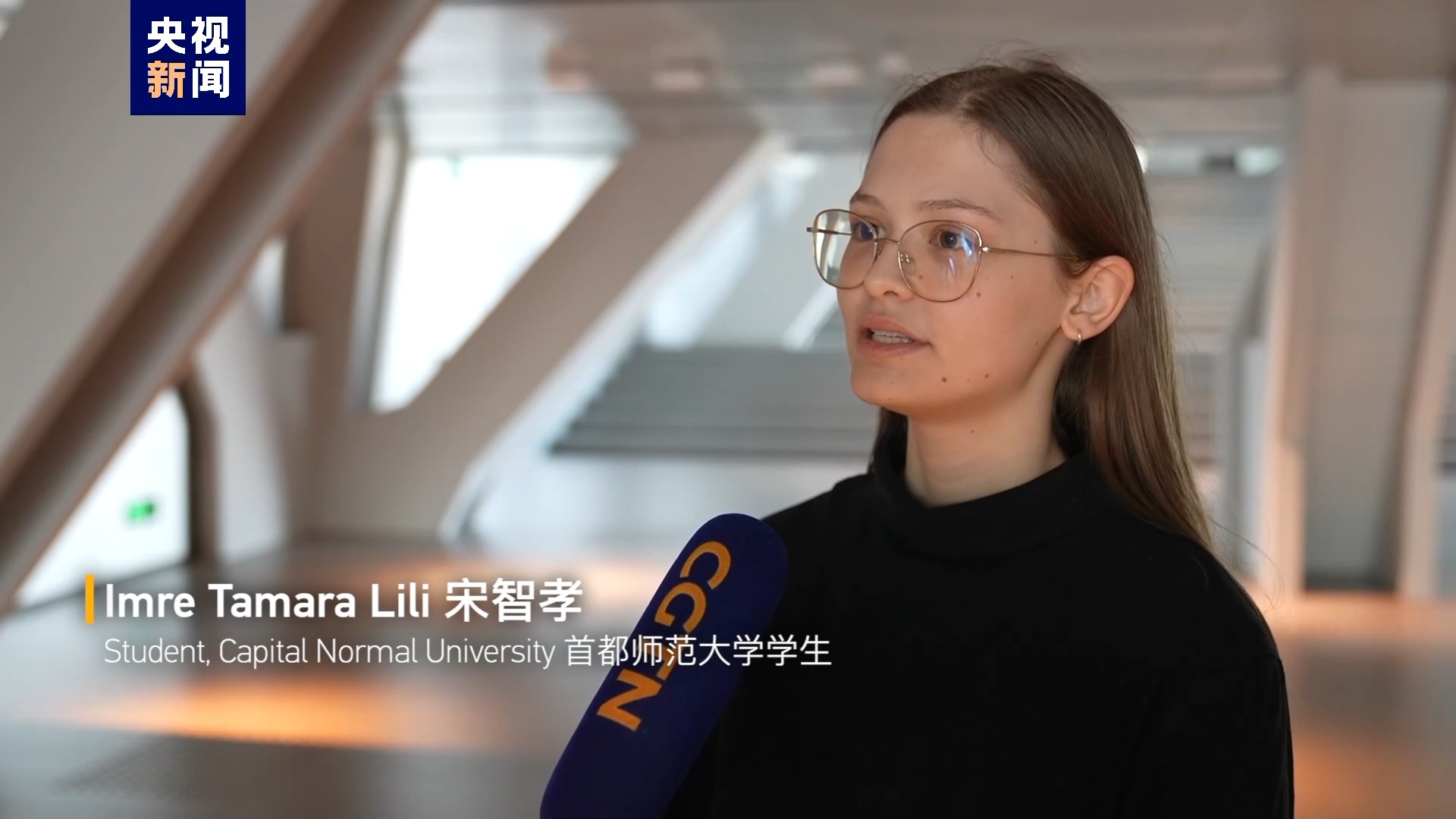 首都师范大学学生 瓦尔加·博尼塔 (又名 胡灵月):(这是)我和宋智孝第二次获得大使奖学金。 我们对此感到非常高兴和兴奋。 我们想分享我们的喜悦。所以,我们给习近平主席写了一封信。