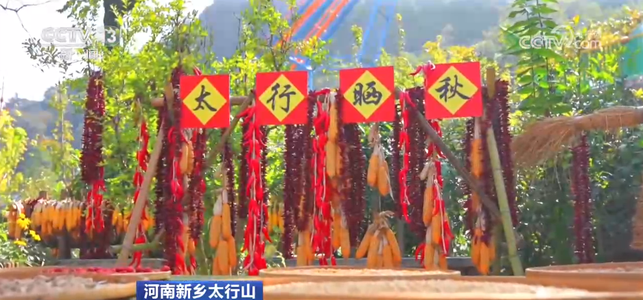丰收的颜色,还在金秋十月的太行山崖上丰收小院里。这里正在进行的“晒秋”把“五谷丰登”装进箩筐、装进饭碗,传统民俗和新消费场景结合,开启悬崖“晒秋”之旅。