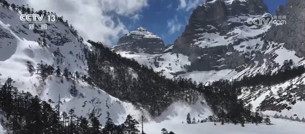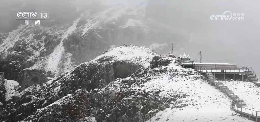 从10月14日开始,云南迪庆州香格里拉市的多处景区都迎来了今年入秋后的第一场降雪。在巴拉格宗景区,山峦被雪覆盖,像是披上一层梦幻的白纱,尽显婀娜。海拔4449.5米的石卡雪山同样变得银装素裹,雪花覆盖在树木和山峰上,目之所及云雾飘渺。