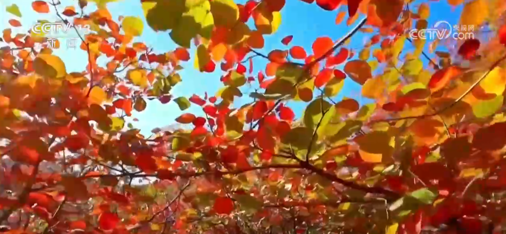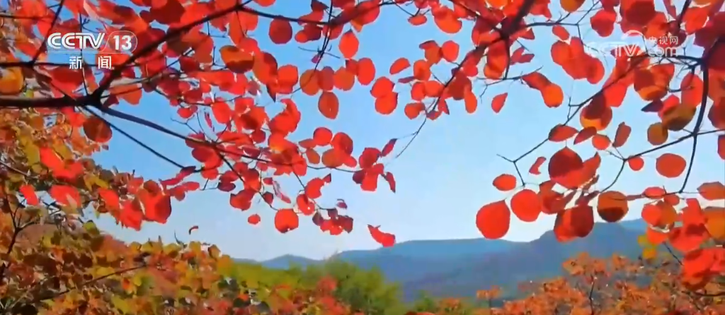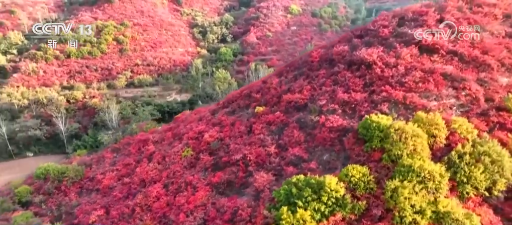 金秋时节,在河南许昌禹州市鸠山镇,漫山遍野的红叶在秋风中翩跹起舞。从空中俯瞰,满山鲜艳的红叶、黄叶和翠绿色的松柏相互交织映衬,色彩斑斓、姹紫嫣红,令人心旷神怡。在璀璨的秋日阳光照耀下,片片红叶或鲜红似火,或闪烁生辉,红得各有千秋,把群山装扮得分外妖娆。
