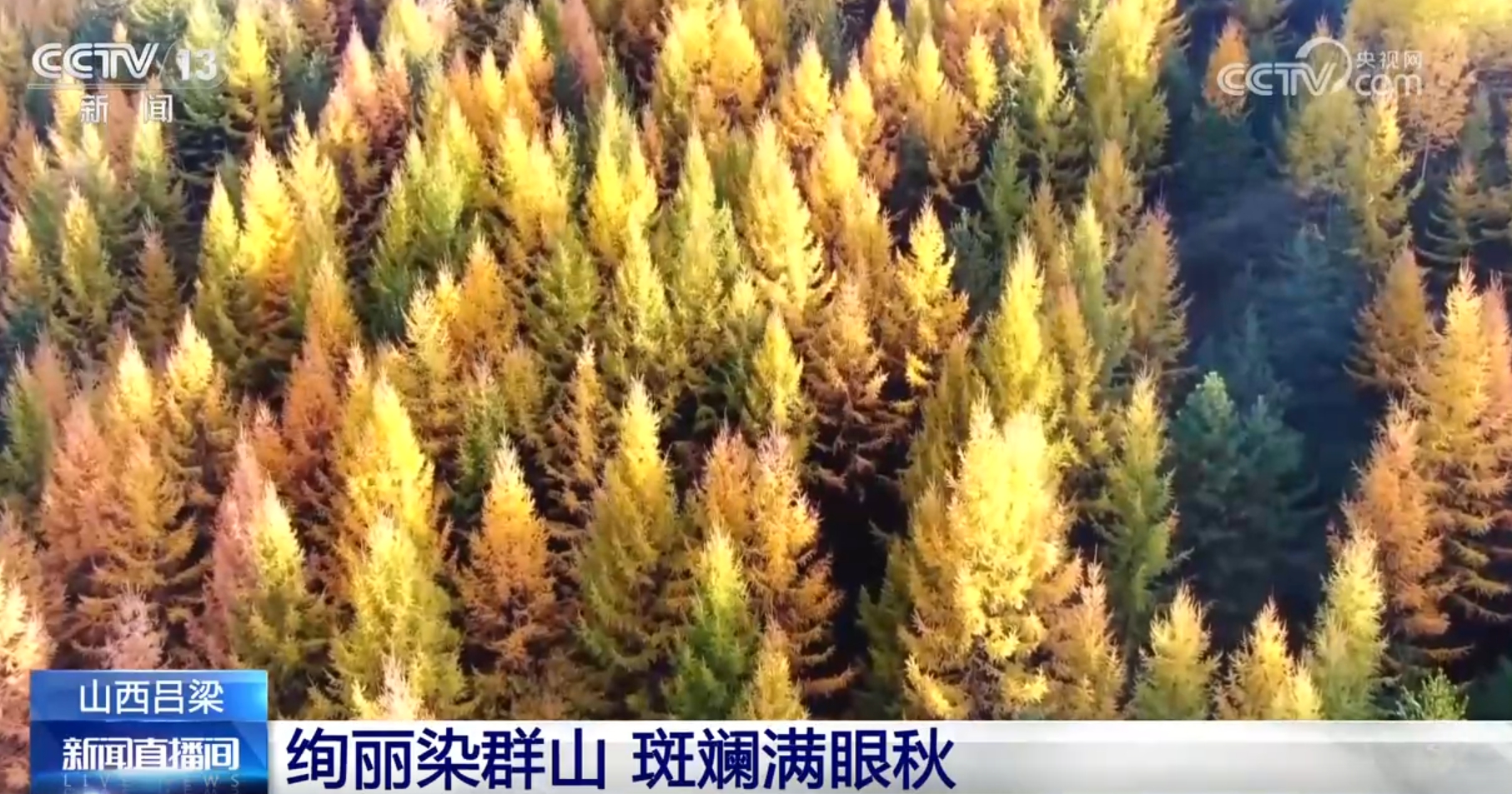 山西吕梁市方山县境内的梅洞沟省级湿地公园秋色渐浓。从空中俯瞰,这里层峦叠嶂,起伏的群山被红、绿、黄等多彩的叶子装扮得色彩斑斓,再加上潺潺溪水相衬托,形成了一幅山林秋景图。