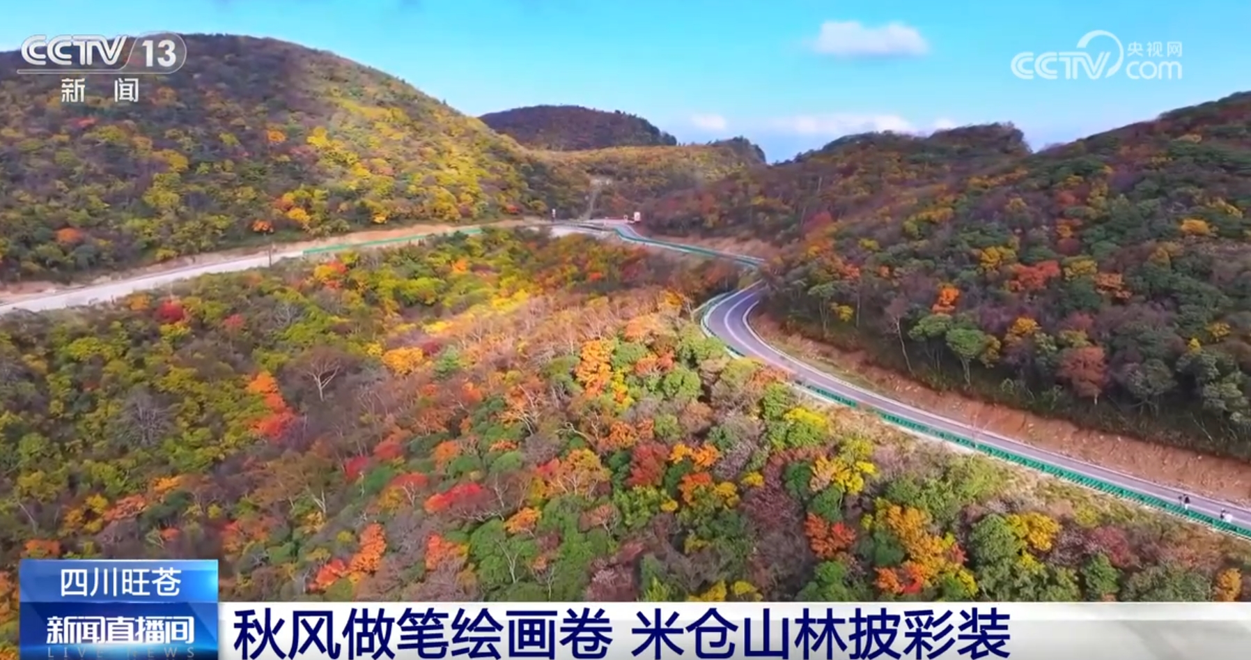 眼下,四川广元旺苍县境内的米仓山“披”上了彩装。四万余亩的山林渐次变色,各种树木间呈现出翠绿、鹅黄、杏橙、火红等不同颜色,随着山势高低起伏,山林层林尽染,一望无际。不少游客来到此地领略秋日的盛景,感受米仓山的秋日浪漫。