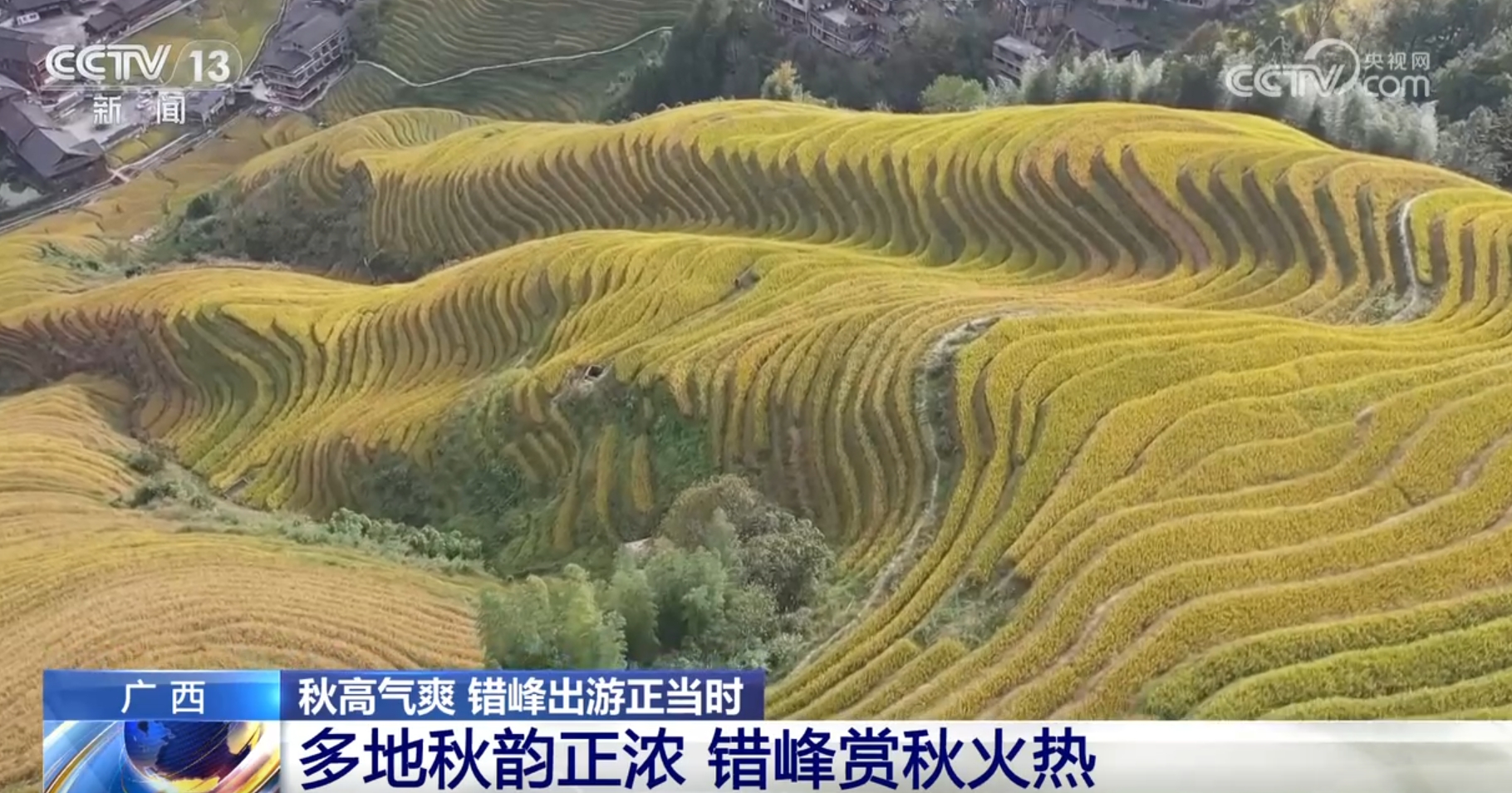 在桂林龙脊梯田,秋日成熟的稻田层层叠叠,稻浪翻涌、美不胜收。记者从某旅行社了解到,今年龙脊梯田稻谷收割时间从10月27日开始,持续5天左右,目前已吸引不少人前去旅行社咨询。