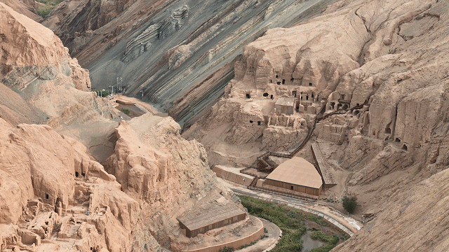 新疆鄯善县吐峪沟景区一角(10月6日摄,无人机照片)。