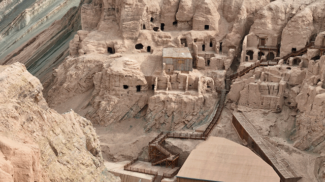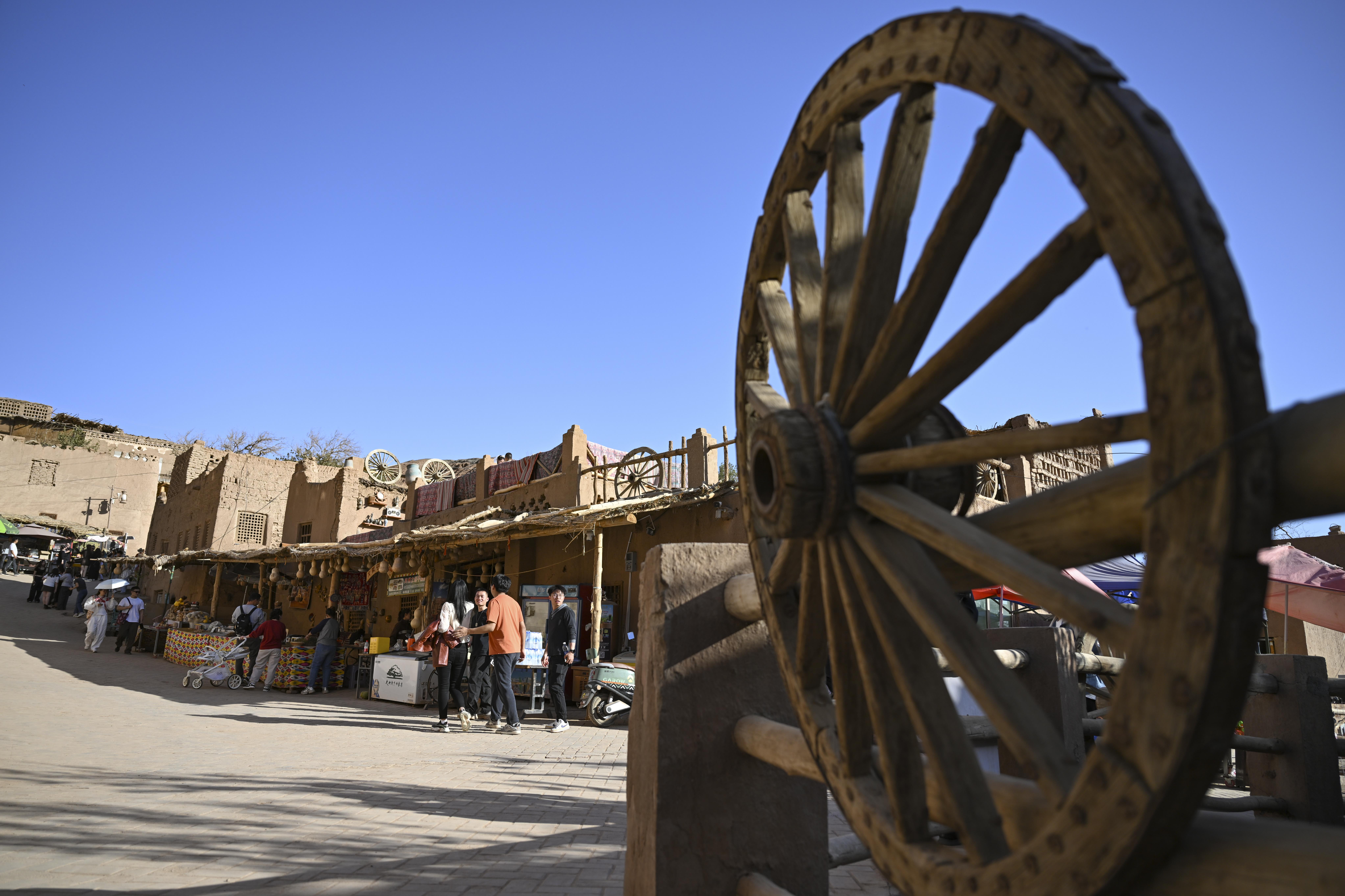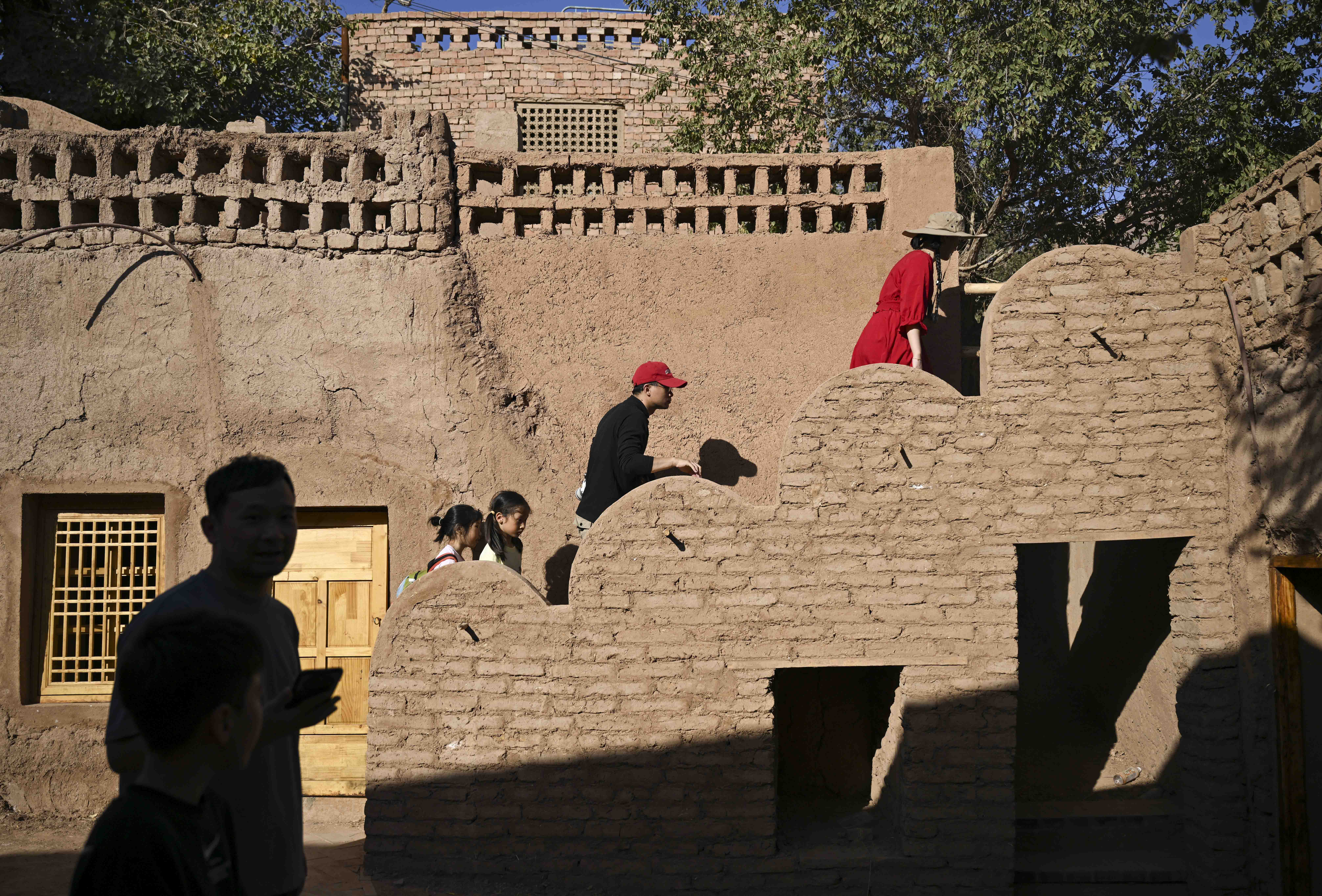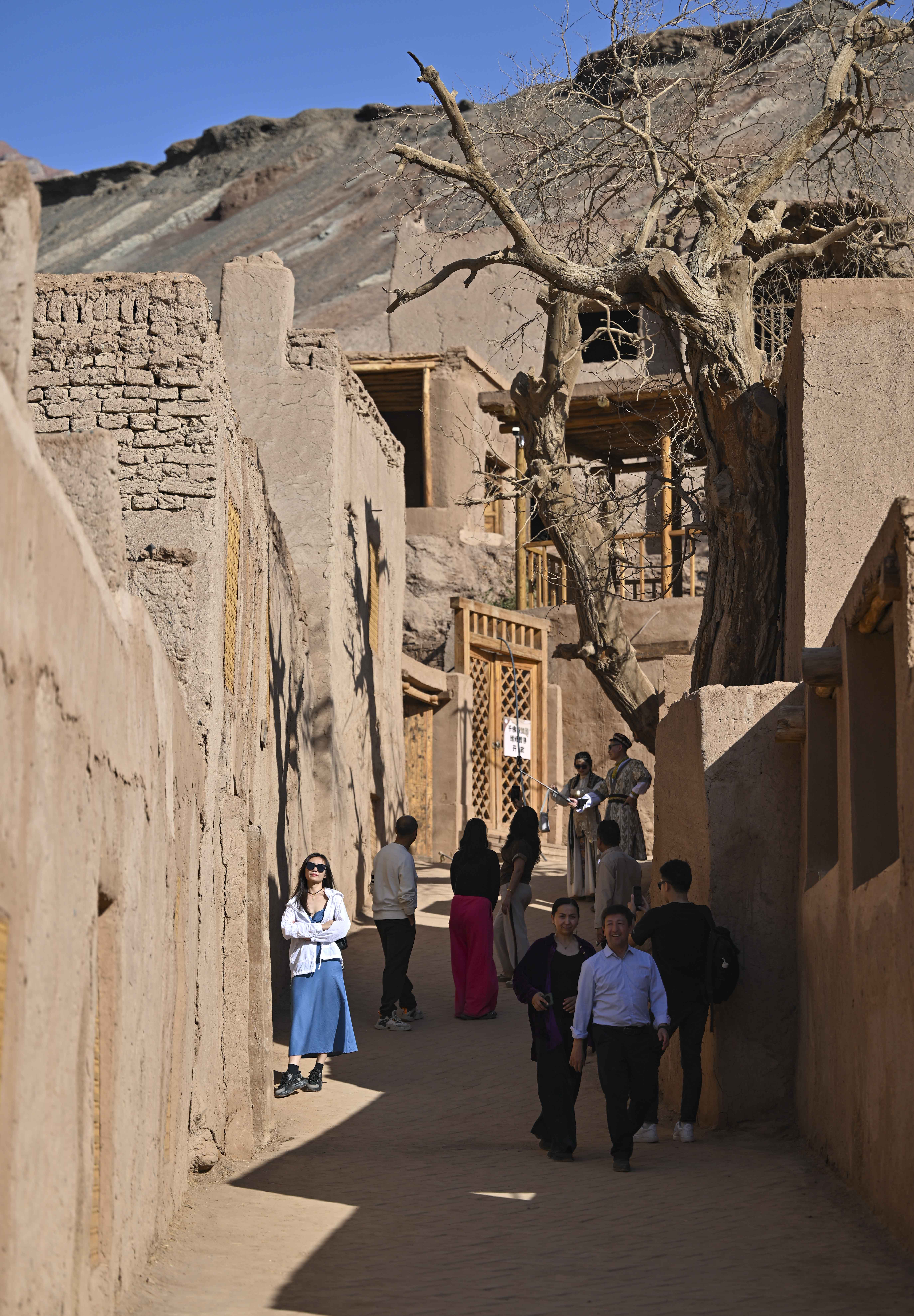 游客在新疆鄯善县吐峪沟村游玩(10月6日摄)。