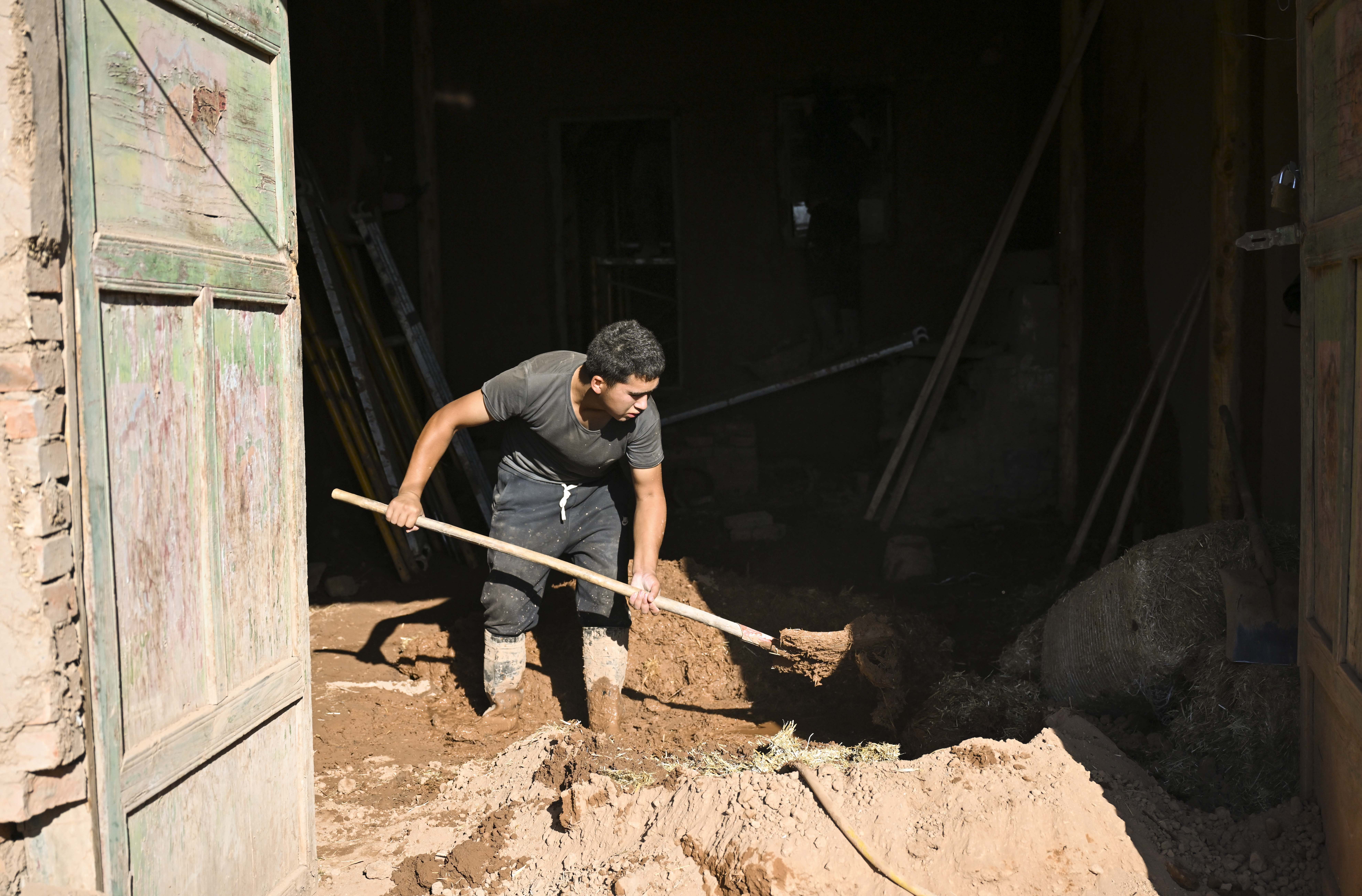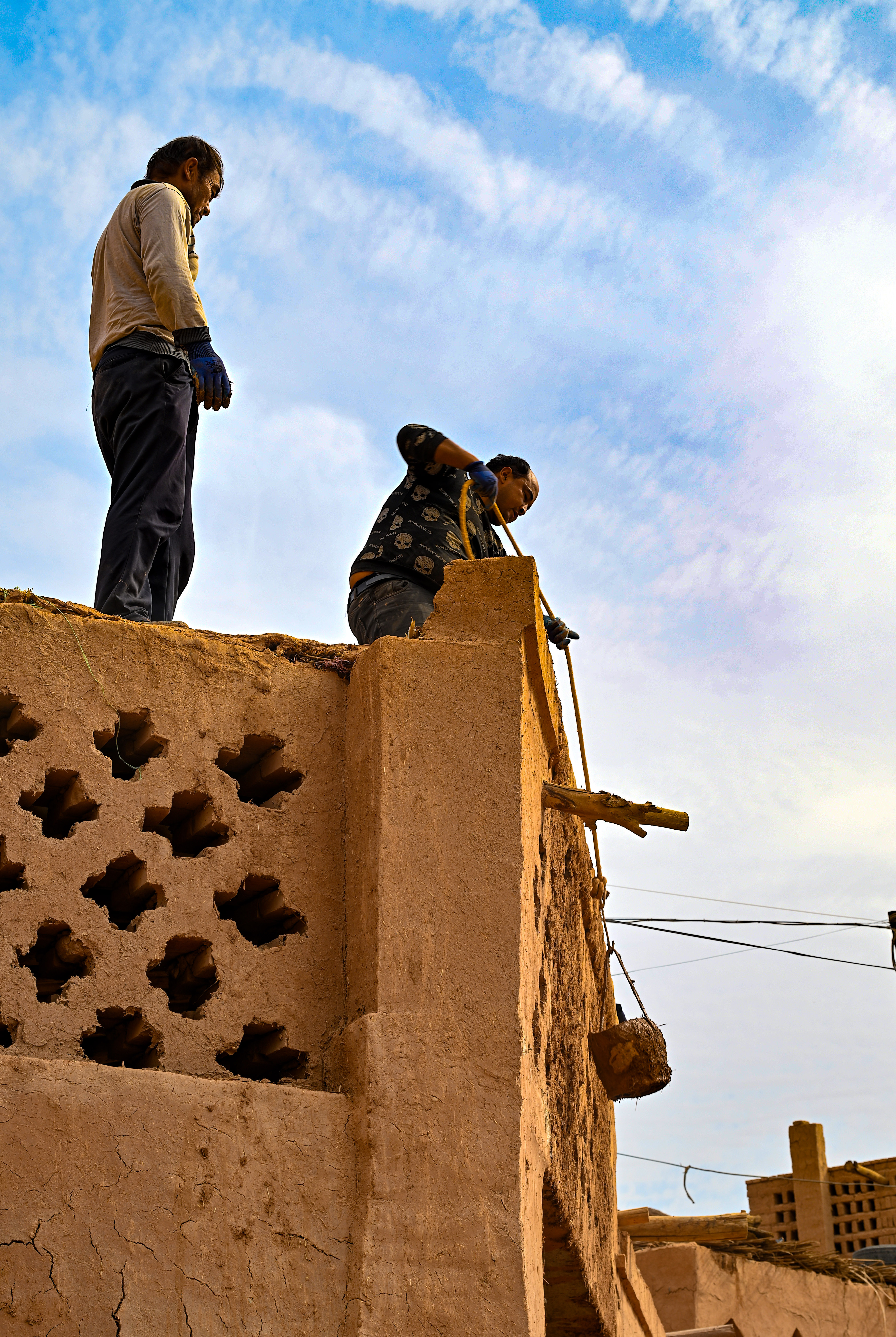 村民用黄土、秸秆和泥,用以维修传统民居的墙体等(10月8日摄)。
