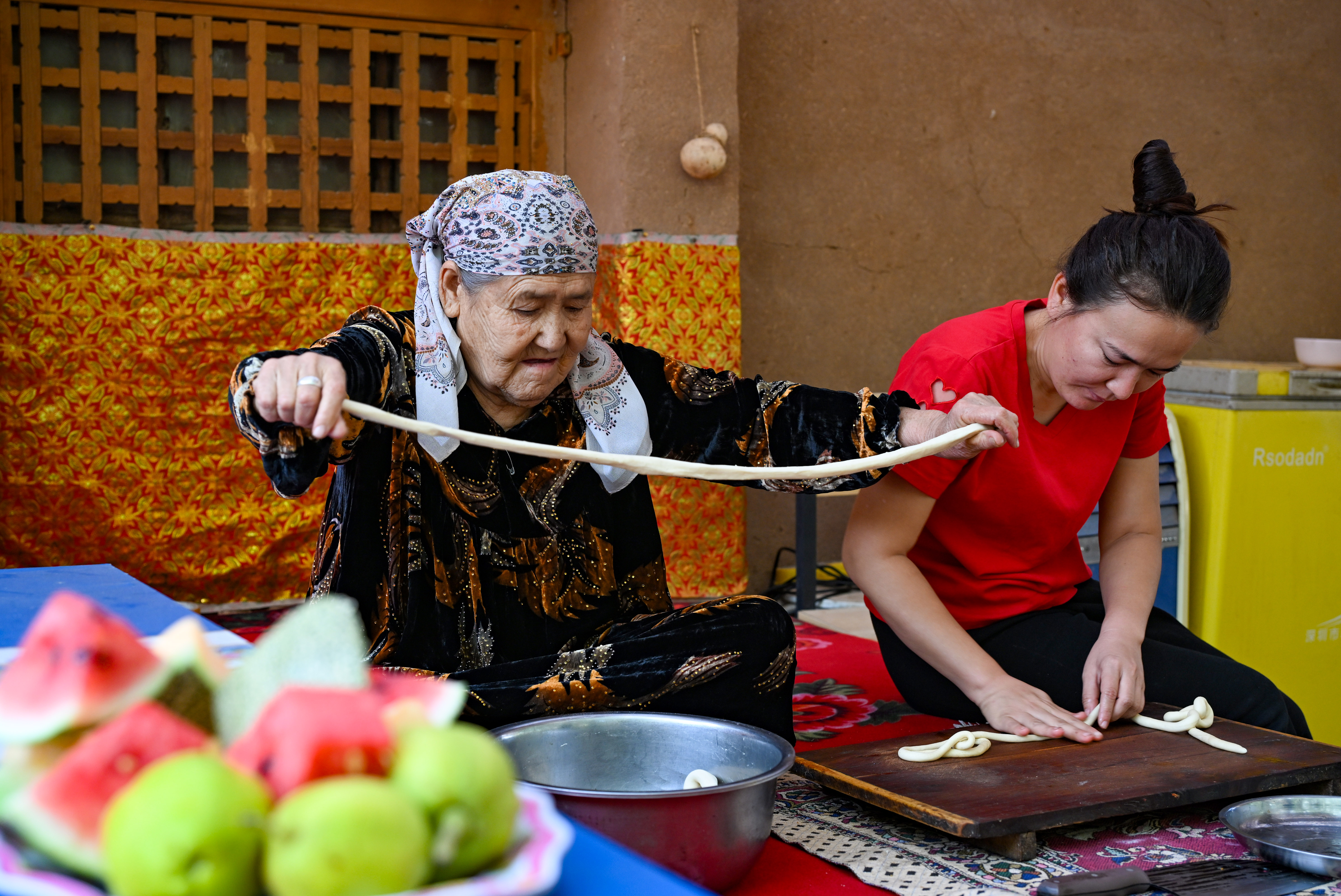 村民在家中制作面食,准备午餐(10月8日摄)。