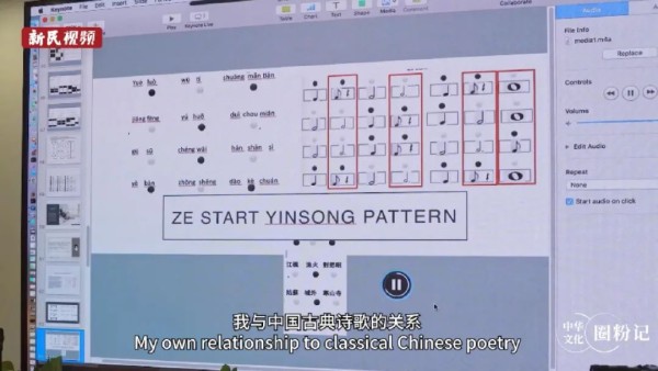 当“诗仙”李白的《静夜思》从美国俄克拉荷马大学教授石江山口中以独特的音韵唱出,这首脍炙人口的古诗仿佛被赋予了新的独特神韵:与中文字数相同的五个单音节英语单词,押着中国古诗的韵律,成了一首“可以被唱出来的”英语绝句。