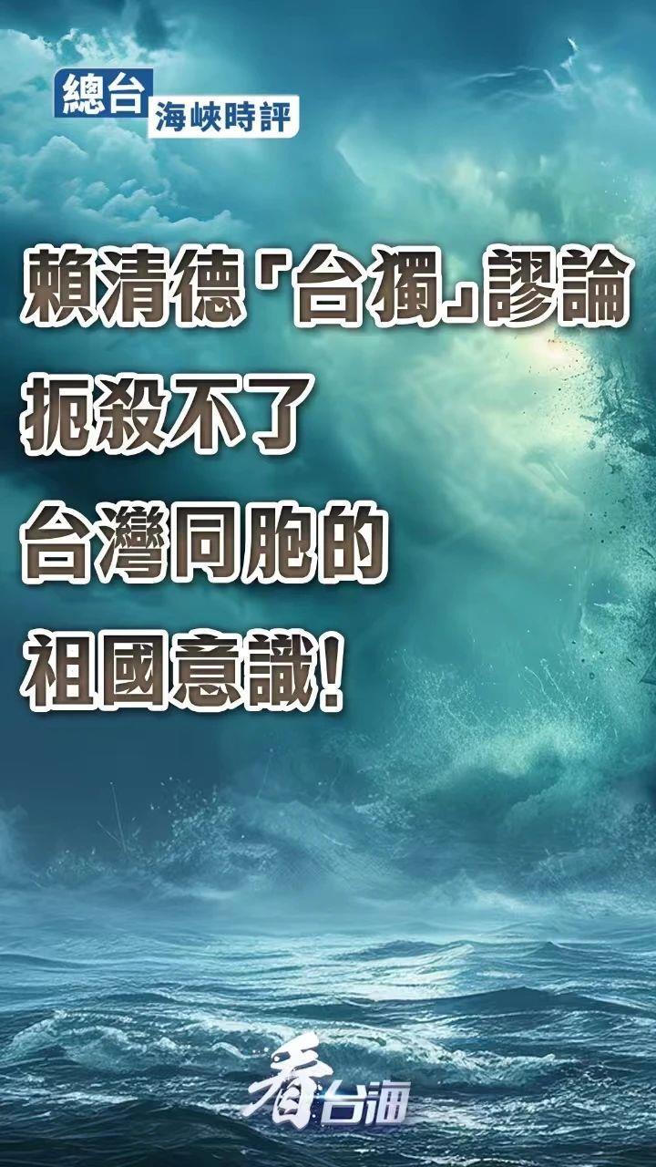 《总台海峡时评》:赖清德“台独”谬论扼杀不了台湾同胞的祖国意识!