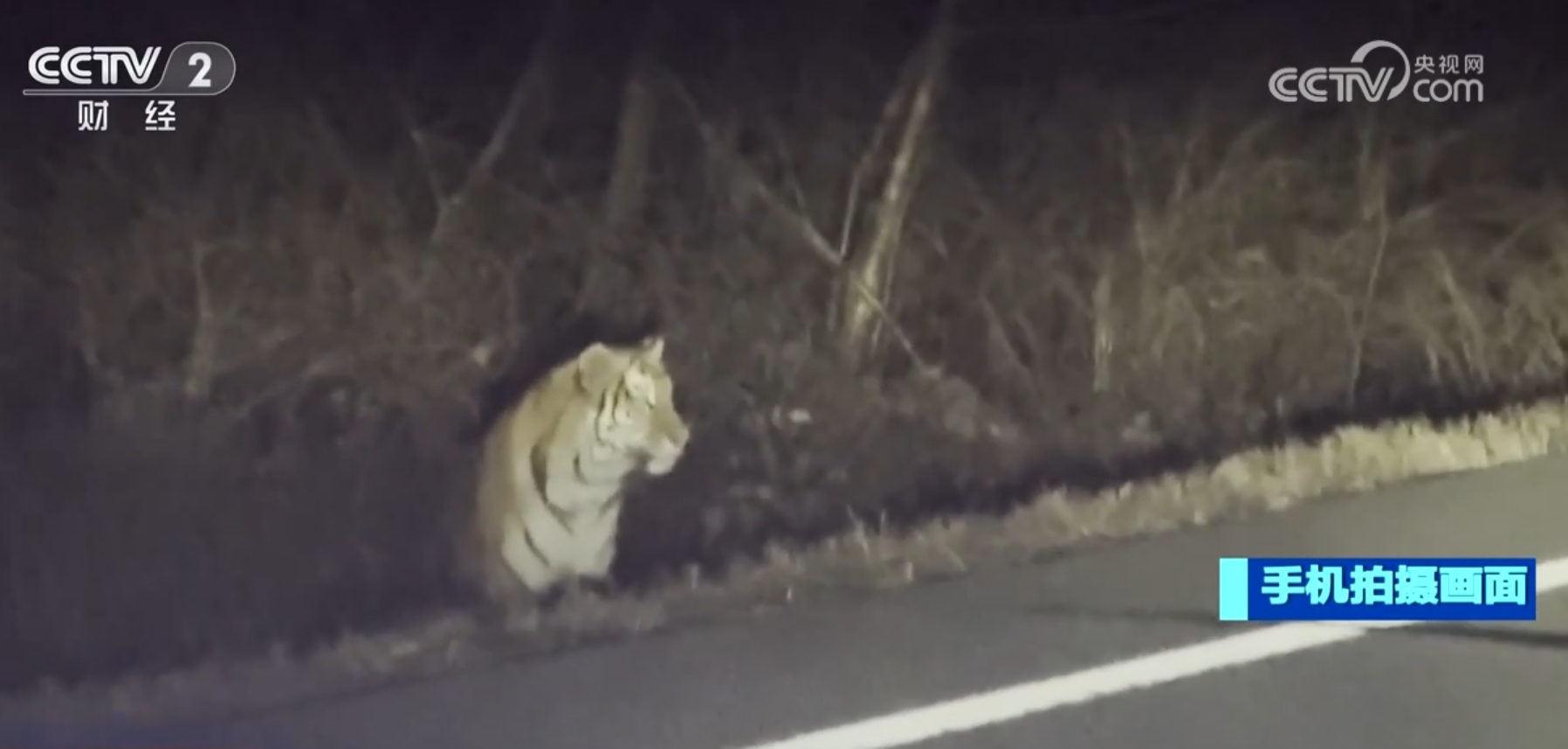 近日,在吉林珲春,一名自驾游的游客两次遇到野生东北虎,来看他用手机记录的画面。