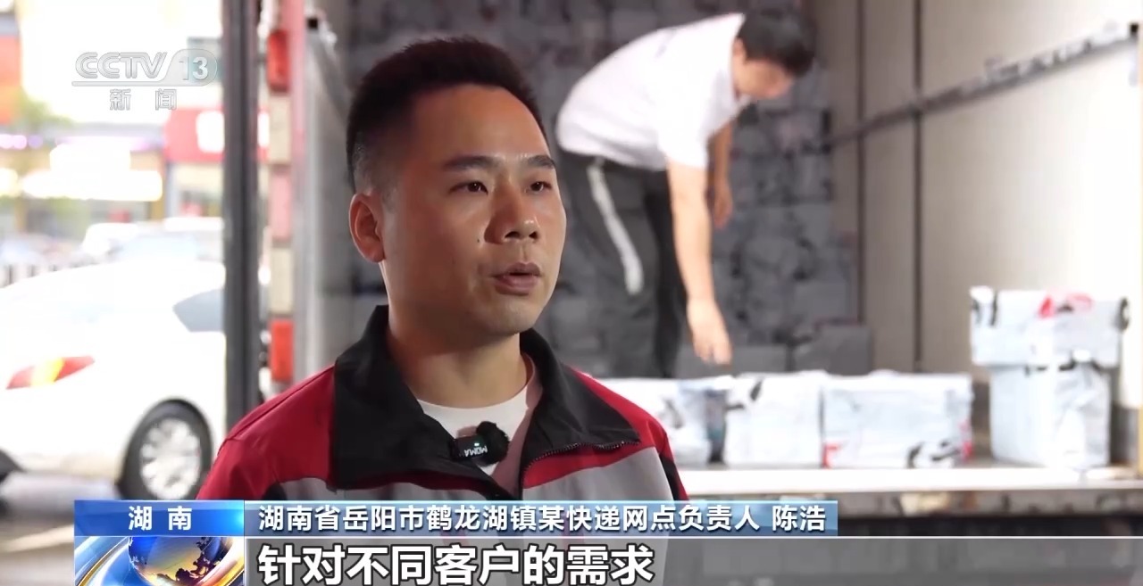 湖南省岳阳市鹤龙湖镇某快递网点负责人 陈浩:针对不同客户的需求,采取延长服务时间的举措,每个片区我们还增设了一个揽收点,由业务员上门收件,实现了周边城市半日到达,省内城市二十四小时到达。