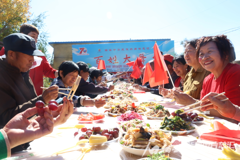 9月29日上午,阜康市九运街镇群众摆起“百家宴”,喜迎国庆。王晓雪 摄