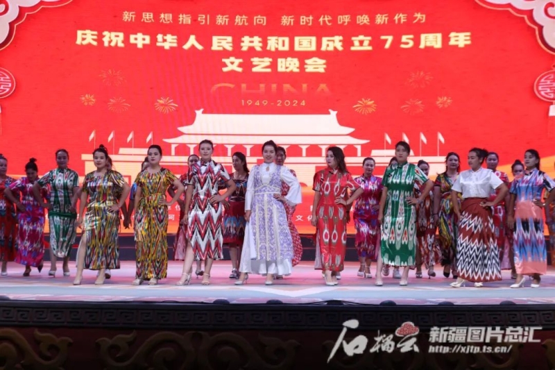 阿克陶县桢中古城舞台上,正在上演的庆祝中华人民共和国成立75周年文艺晚会。阿克陶县融媒体中心供图