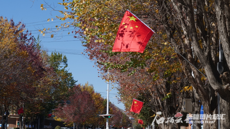 满城“中国红”,拳拳爱国心。青河县团结路街道迎风招展的五星红旗,形成一道道亮丽的风景线。新疆顺源城市开发建设有限公司项目办公室干部周健说:“今年是新中国成立75周年,我们在青河县团结路悬挂100面国旗,营造浓厚的节庆氛围,表达浓浓的爱国情感。”