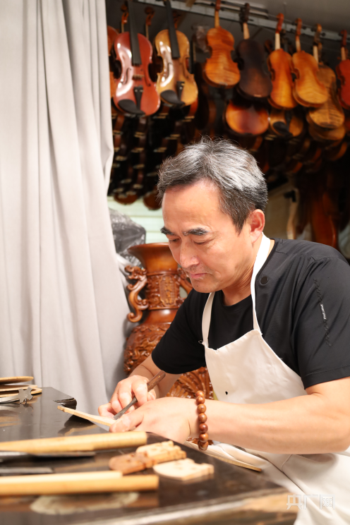 从父亲手中接过制琴的接力棒,吕官宝还自学绘画、雕刻技艺,制琴水平日益精湛。如今,他已是国家二级制琴师。