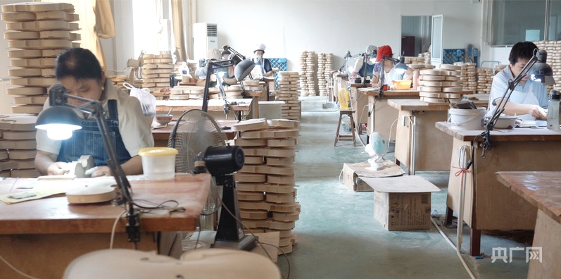 黄桥企业内,工人分工完成提琴制作各环节(央广网记者 王姝姝 摄)