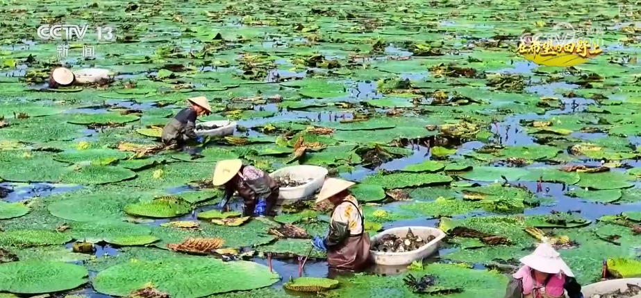 国庆假期这几天,安徽霍邱的千亩芡实迎来大面积丰收。水田里的采摘工人们抢抓农时采摘鲜嫩的芡实,分享收获的喜悦。
